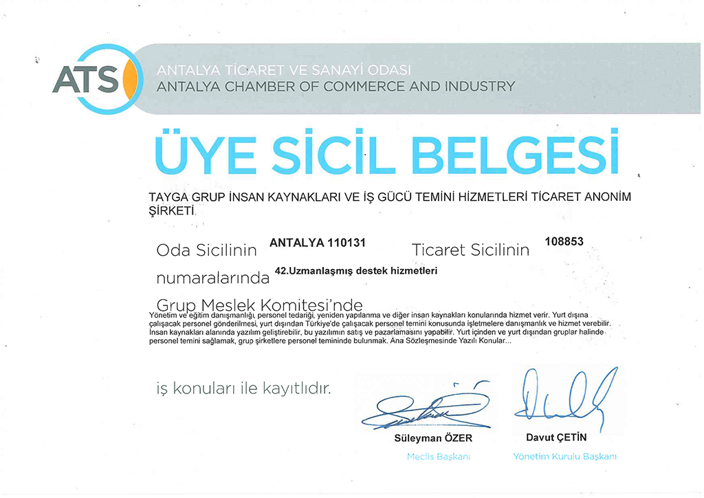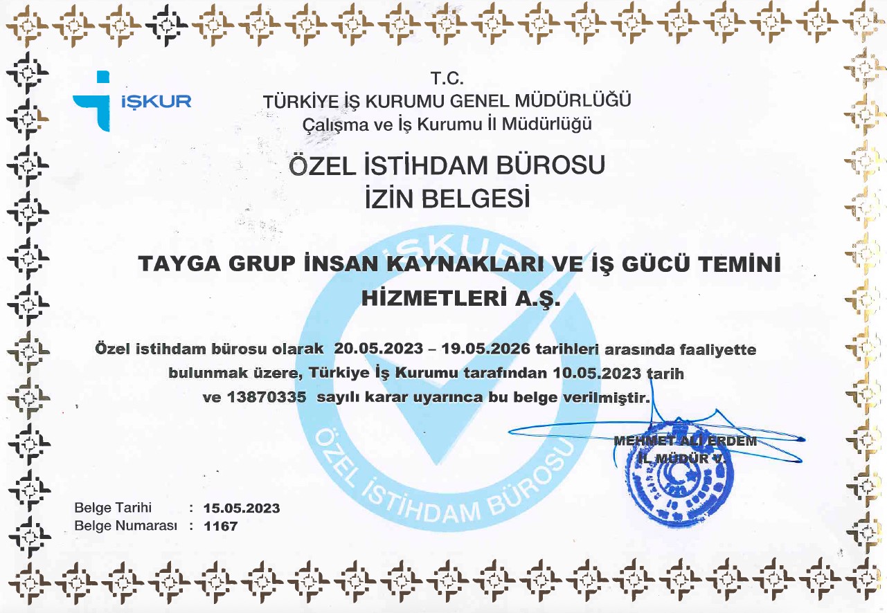 TAYGA GRUP İNSAN KAYNAKLARI VE İŞ GÜCÜ TEMİNİ HİZMETLERİ TİCARET A.Ş